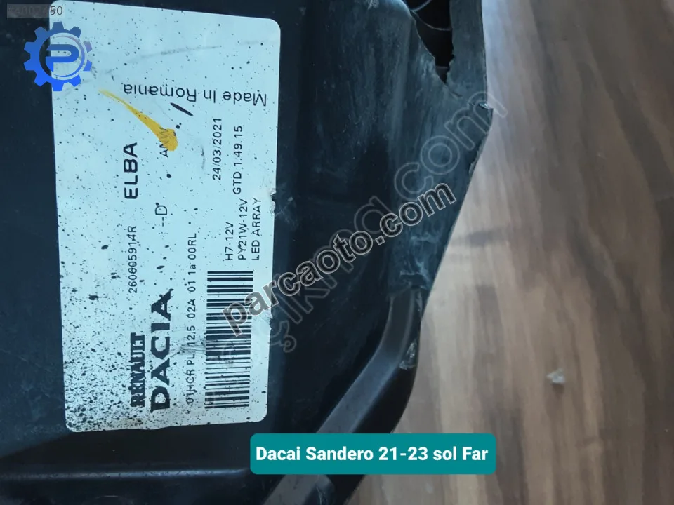 Satışını yaptığımız ürün, 2025 - 2025 model Dacia Sandero araçlarla uyumlu Far