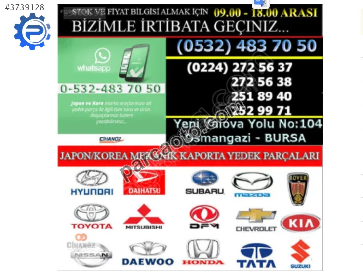 Hyundai Matrix 2001-2010 modelleri için kapı arayan kullanıcılar için bu parça sıfır olarak listelenmektedir. Çıkma parçalar, sıfır parçalara göre daha uygun fiyatlı olup orijinal üretici kalitesini korur. Bursa adresinde bulunan satıcıdan temin edilebilir.