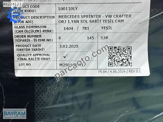 Mercedes Sprinter 2020-2024 modelleri için kapı camları arayan kullanıcılar için bu parça sıfır olarak listelenmektedir. Çıkma parçalar, sıfır parçalara göre daha uygun fiyatlı olup orijinal üretici kalitesini korur. İstanbul adresinde bulunan satıcıdan temin edilebilir.