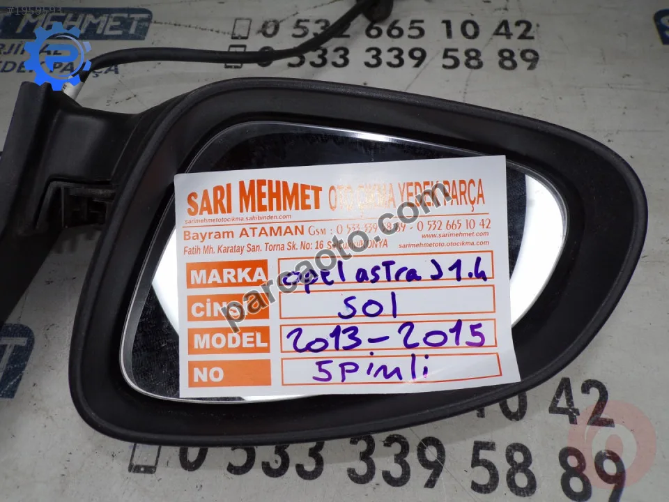 Opel Astra 2013-2015 modelleri için dış ayna komple arayan kullanıcılar için bu parça orijinal ve sağlam durumda olarak listelenmektedir. Çıkma parçalar, sıfır parçalara göre daha uygun fiyatlı olup orijinal üretici kalitesini korur. Konya adresinde bulunan satıcıdan temin edilebilir.