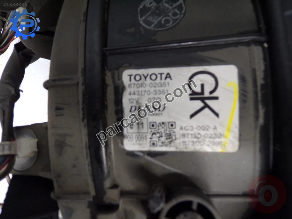 Toyota Auris 2022-2022 modelleri için kalorifer kutusu arayan kullanıcılar için bu parça orijinal ve sağlam durumda olarak listelenmektedir. Çıkma parçalar, sıfır parçalara göre daha uygun fiyatlı olup orijinal üretici kalitesini korur. Konya adresinde bulunan satıcıdan temin edilebilir.