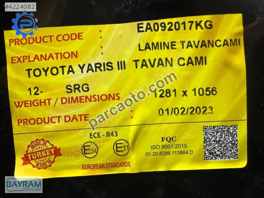 TOYOTA YARİS 3 TAVAN CAMI 2012-